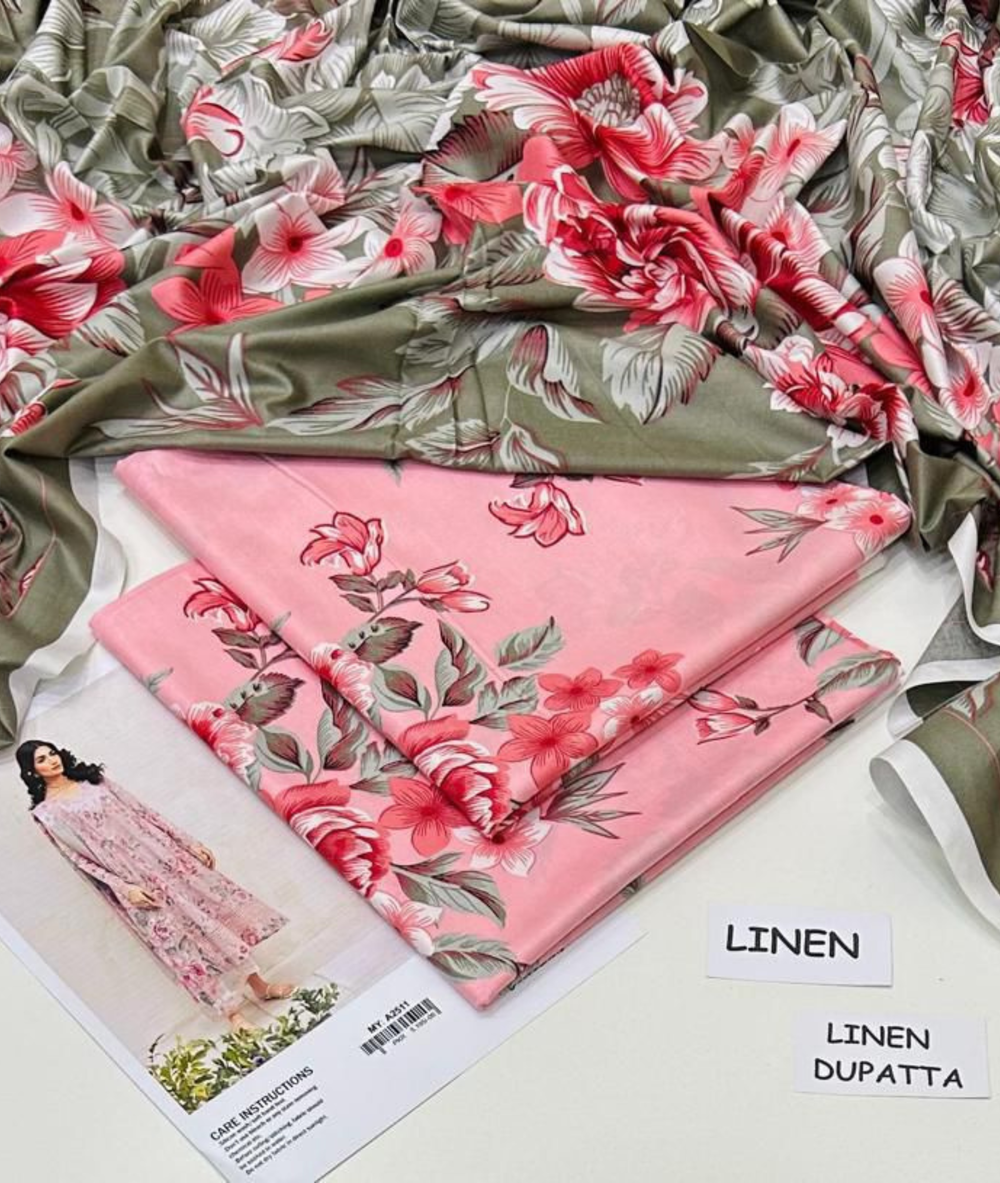 Refresh your wardrobe with this elegant floral linen suit, perfect for the winter season. This 3-piece unstitched set includes: